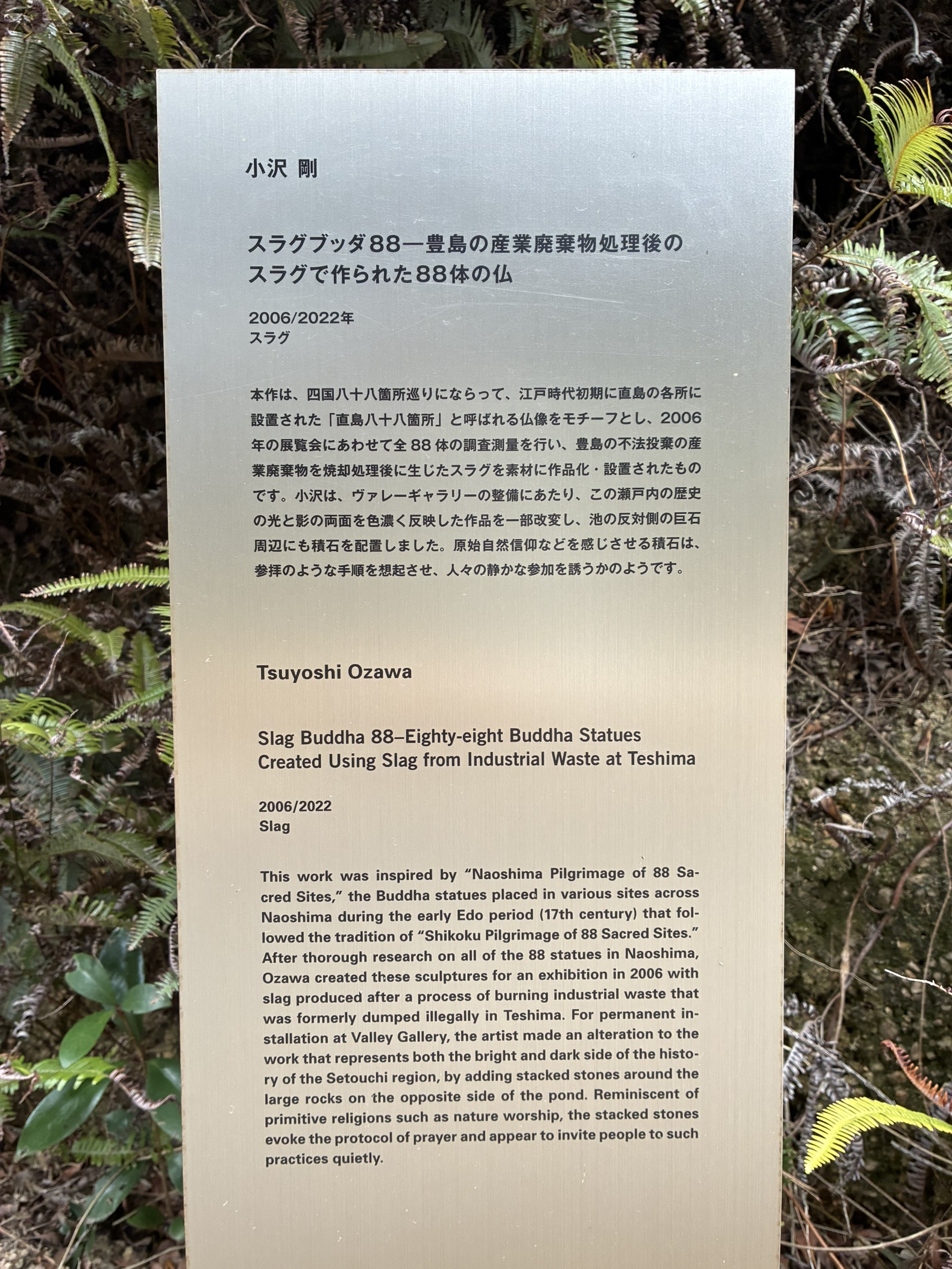 直島に建設された処理施設では、運び込まれた廃棄物を1300℃以上の高温で溶融し、無害化する作業が行われました。その過程で副産物として生まれたのが、この仏像の素材である「スラグ」です。2017年にすべての処理が完了するまで、実に14年。負の遺産を技術と意志で資源へと変えてきた歴史が、この島には息づいています。